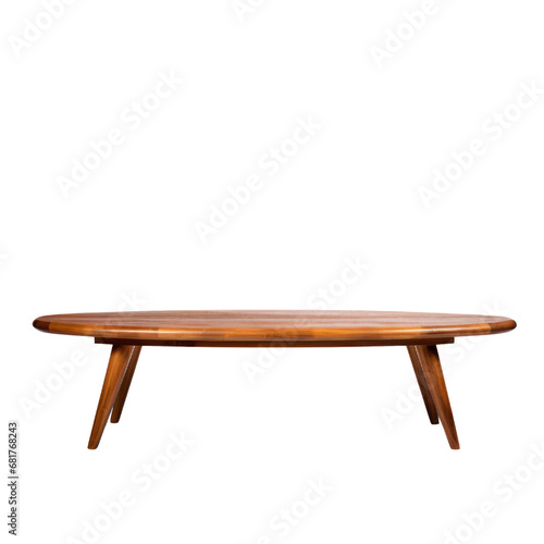 A modern round wooden coffee table with a sleek design, isolated on a transparent background.