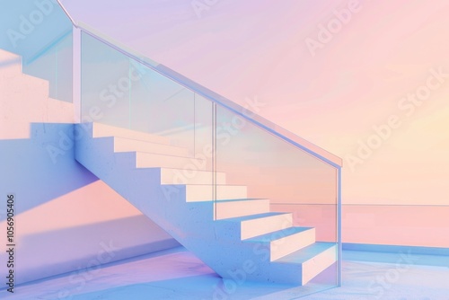 A modern staircase with a glass railing in a room, suitable for interior design or architecture photography