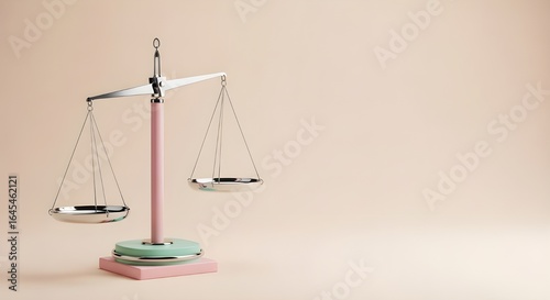 A modern, unbalanced scale with a single weight on one side and a pink background.