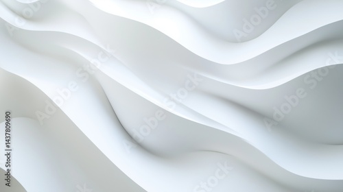 A modern white background featuring abstract geometric waves with clean, crisp lines. The waves flow smoothly across the surface, creating a sense of depth and fluidity.