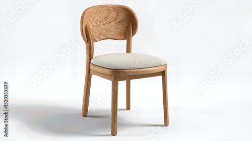 A modern wooden chair with a fabric cushioned seat photographed from a front angle against a white background
