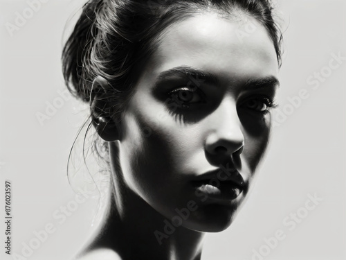 A monochrome, blurred portrait emphasizing light and texture.