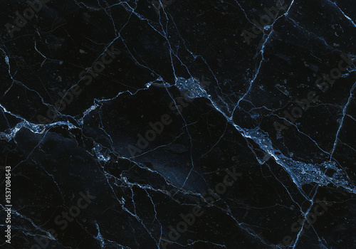 A moody and elegant dark onyx marble texture with a faint blue iridescent glow and natural veining. This seamless design offers a mysterious and luxurious feel, ideal for fantasy visuals, game design