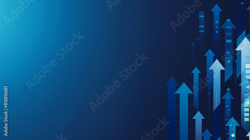 A myriad of luminous blue arrows pointing upward against a dark backdrop, symbolizing upward movement and dynamic growth. Generative AI