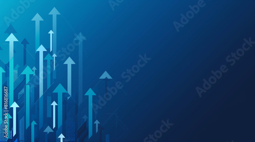 A myriad of luminous blue arrows pointing upward against a dark backdrop, symbolizing upward movement and dynamic growth. Generative AI