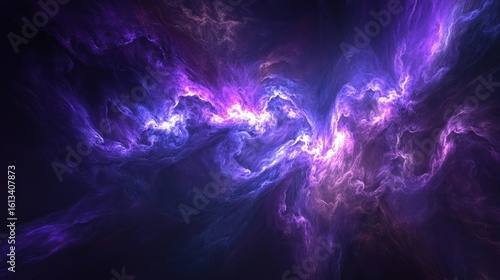 A mystical abstract background with flowing dark purple and blue gradients, illuminated by soft light reflections, evoking a sense of enchantment and mystery