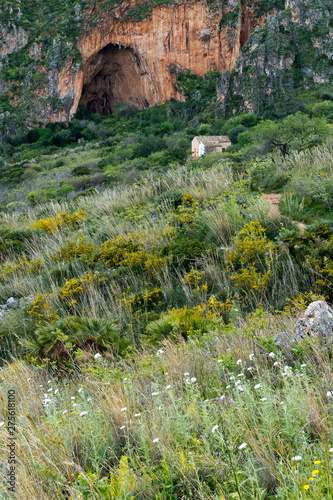 A natural cave near an old house in Oasi dello Zingaro natural reserve, San Vito Lo Capo, Sicily
