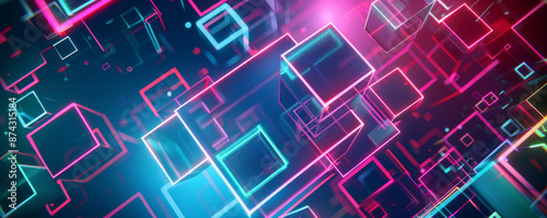 A neon background with glowing, geometric patterns in neon pink, blue, and green, creating a futuristic and energetic vibe.