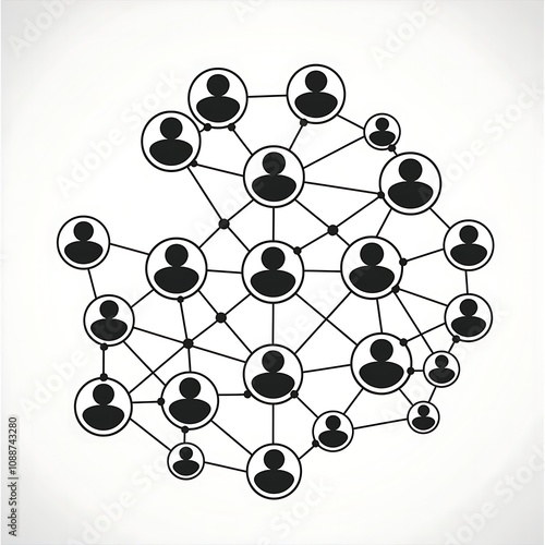 A network of interconnected user icons, representing social connections and relationships in a digital landscape.