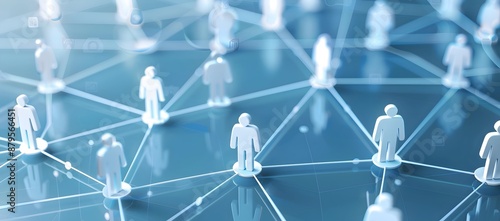 A network of interconnected white figures on a blue background, representing social media networks and community building in marketing