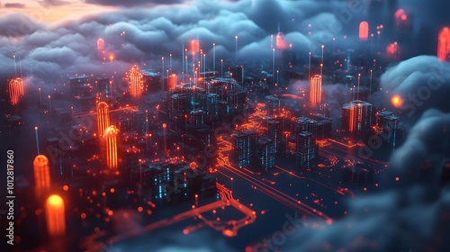 A network of servers and data centers interconnected with fiber optic cables, symbolizing cloud computing technology and data storage