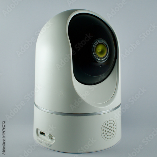 A new generation ip camera used in home and workplace security. Baby, child and elderly monitoring camera. Security camera that can broadcast over the internet. Isolated on white background.