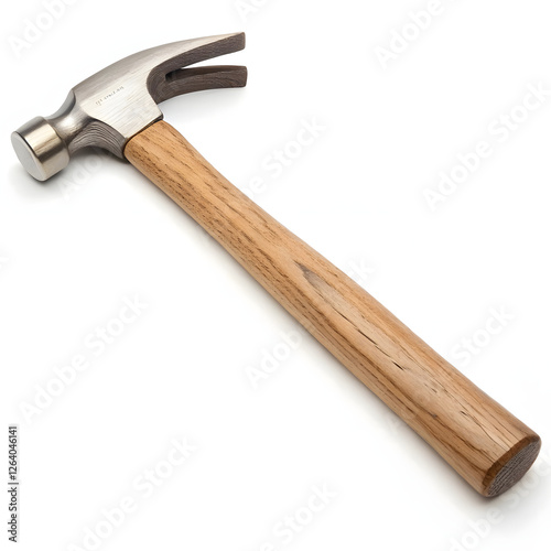 A new hammer with a silver head and wooden handle is displayed against a white background.