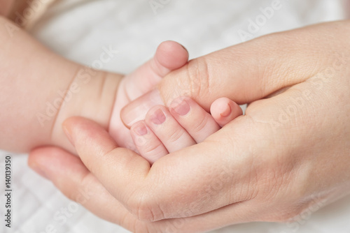 A newborn baby holding his mother's hand