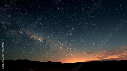 A night sky filled with stars and the milky way over a dark horizon with a colorful glow behind it