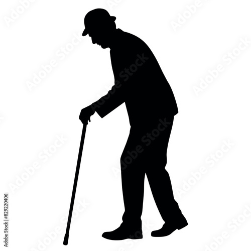 A Old Grandpa Stand with cane vector silhouette, Old man walking with cane vector silhouette