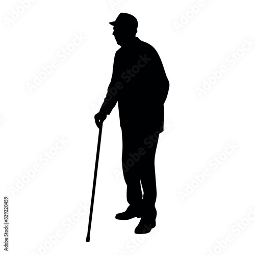 A Old Grandpa Stand with cane vector silhouette, Old man walking with cane vector silhouette