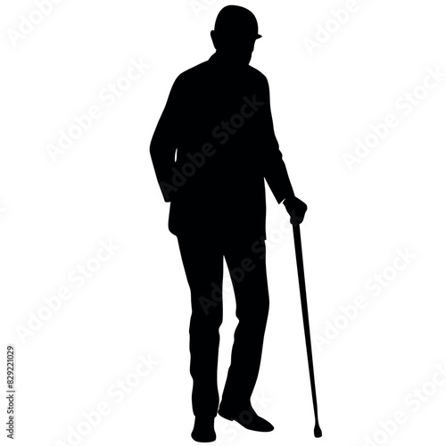 A Old Grandpa Stand with cane vector silhouette, Old man walking with cane vector silhouette
