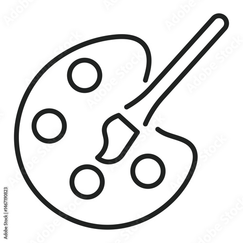 A paint palette is shown with circles and a brush used for art and painting. It has black lines and a white background. Simple icon
