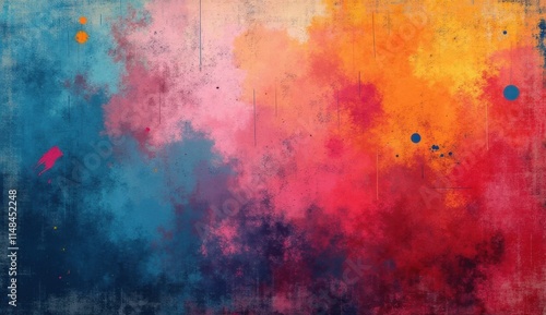 a painting of a colorful cloud with a red, blue, yellow and pink hue