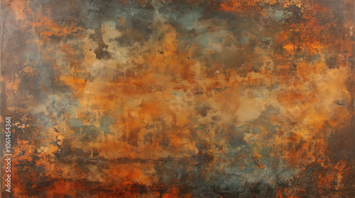 A painting of a rusty wall with a blue sky in the background