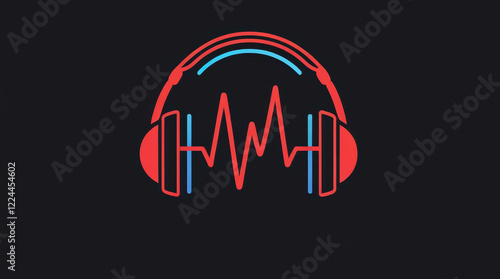 A pair of headphones with a pulsating sound wave passing through them. The wave forms a subtle silhouette of a heartbeat. Red and black colors.