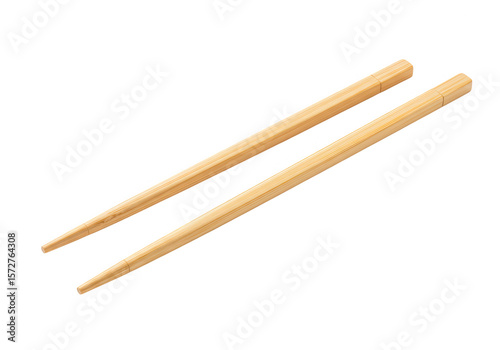 A pair of wooden chopsticks are isolated on a transparent background, ready for an asian meal