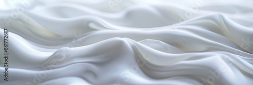 A panoramic view of a soft-focus white seamless fabric texture. The fabric is draped in a series of waves that create a serene and elegant feel