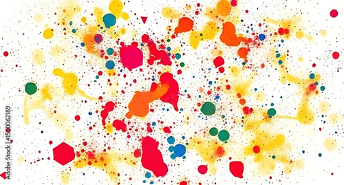 A paradoxically clean abstract design: chaotic paint splatters confined within a strict hexagonal grid system. Matte pastel base colors with one bold accent
