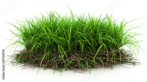 A patch or clump of grass on white background, with the top leaves visible and some roots showing underneath.