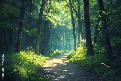 A path through a forest with trees on either side