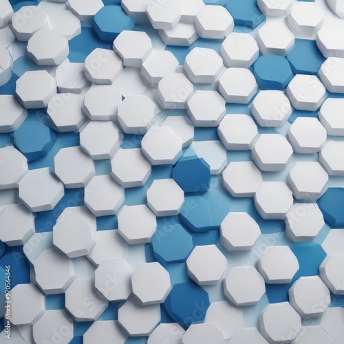 a pattern of white hexagonal shapes arranged in a grid-like fashion, with some blue hexagonal shapes interspersed among them.