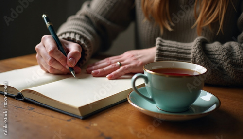 A peaceful moment of creativity with tea and a journal during a cozy afternoon at home