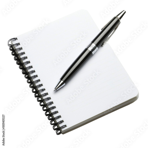 A pen and a spiral notebook are placed on a white background. on transparent background png
