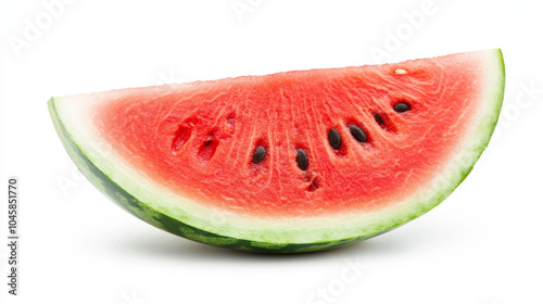 A perfect slice of juicy watermelon, isolated against a white background. It's ready to be enjoyed!