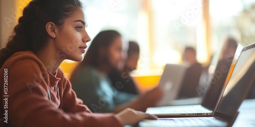 a person attending an online class, focus on laptop screen and focused expression, soft lighting captures the convenience of online learning