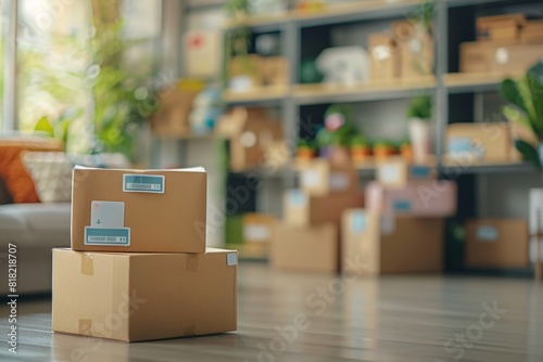 A person giving a webinar from a minimalist, stylish living room, large screen behind showing slides.