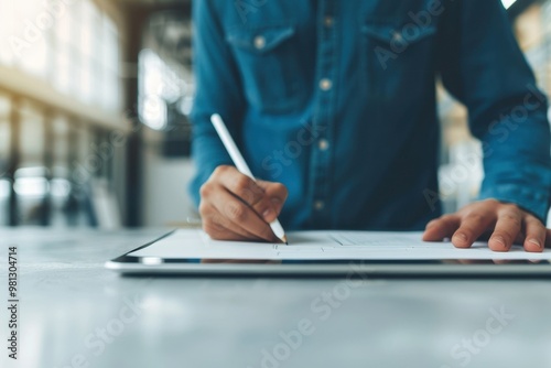 a person hands holding a pencil, drawing on paper during a design or planning session in a modern workspace.