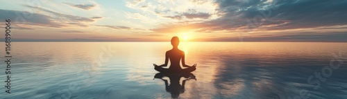 A person meditating at sunrise, promoting peace, tranquility, and a connection to nature. Perfect for relaxation themes.