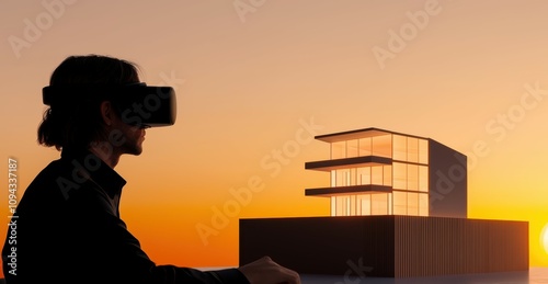 A person using augmented reality glasses to design a digital 3D object in their minimalist studio apartment