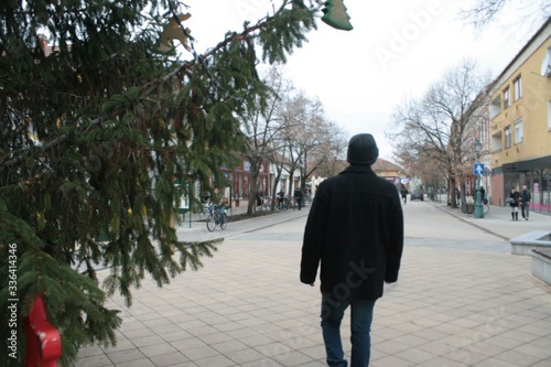 A person walking down a street