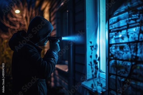 A person wearing a hoodie looking through a window. Suitable for various themes and concepts