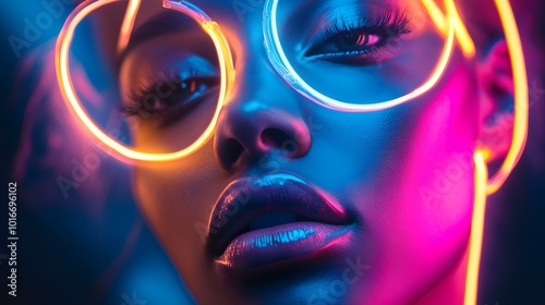 a person with bright neon colors and geometric shapes