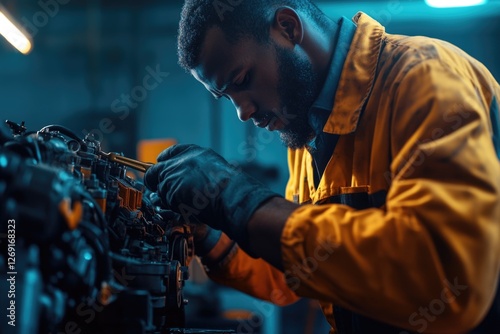A person working on a machine in a factory environment, suitable for use in industry-themed designs or illustrations