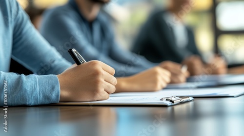 A person writing notes in a notebook during a meeting or study session The image represents focus and productivity in learning environments
