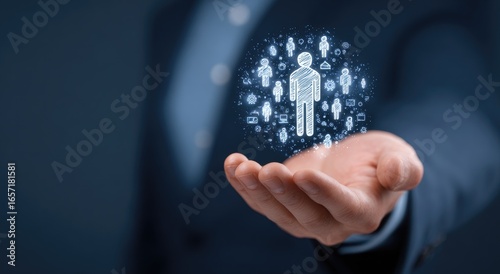 A person's hand gently cradles a glowing orb depicting interconnected people, symbolizing networking and community