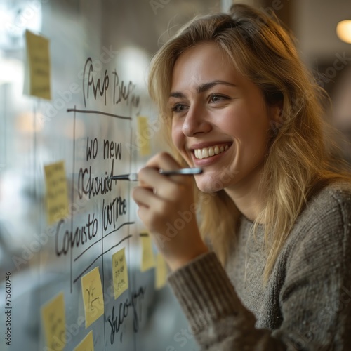 a person's hand writing on a clear surface with a marker, with the words "find new customer" partially visible.