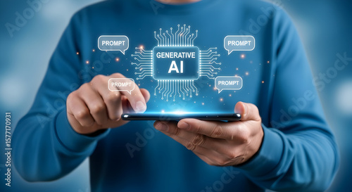 A person's hands engaging with a mobile interface powered by generative artificial intelligence.