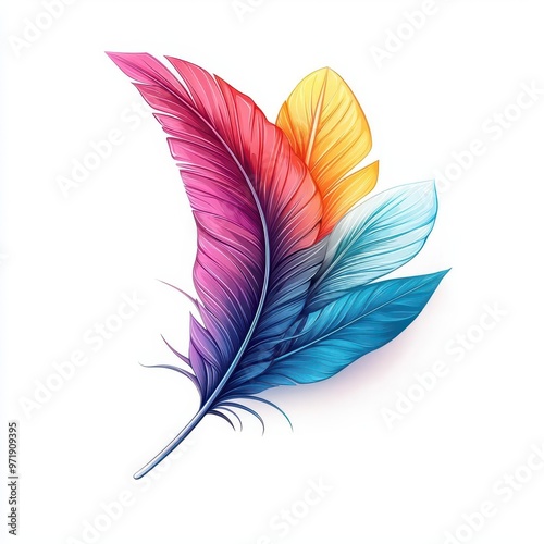 A phoenix feather with rainbow glow, fantasy creature item, hyperdetailed, isolated on white background