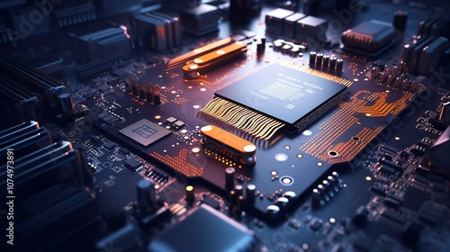 A photo of a motherboard with various components